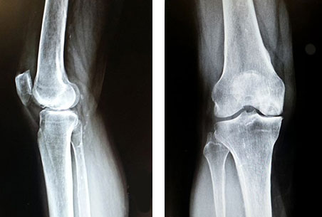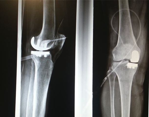 Donna, 67 anni, necrosi del condilo femorale mediale, deambulazione possibile solo con stampella. Trattata con protesi monocompartimentale mediale.